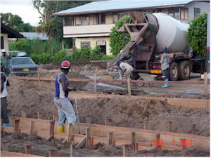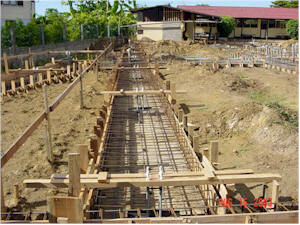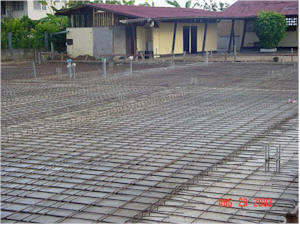 In the pictures below, a base floor is laid for the foundations upon which steel