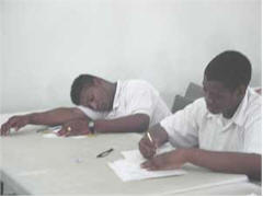 We even have time to get back to a few of the lighter moments, as in this Christmas Eve school event. As more information becomes available in the months ahead, we will keep you posted. Please continue to pray for the school, for the Hamids and Poettckers as they lead in both the church and school. Pray especially for the financial situation, that God will enable us to see this project through to completion in the near future. This is the last page at this moment on the fire rebuilding process. Please move on to some of our photos of returning students and teachers in action.