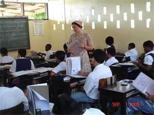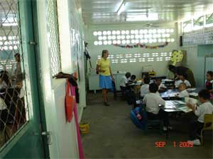 Canadian teacher's assistant helps out a local teacher in one of the elementary school classes. |
