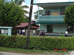 To the left of the main building, students can be seen going to the secondary level classes which are housed to the left as well as in the main building. |