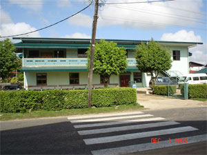 Main building seen from Loorweg (sidestreet) that divides our campus. Second story houses several classrooms, the Headmaster's office, and residences for both local staff and foreign teachers and assistants. |